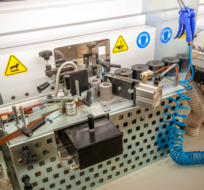 makinelerde kaliteyi öncelikli tuttuk. Mobilya ve Marangoz kenar bantlama makinelerinde ÖN FREZE, ALT ÜST FREZE, BAŞ SON KESME, KÖŞE YUVARLAMA, TEMİZLEME SIVISI, RADİUSLU KAZIMA, KANAL AÇMA, POLİSAJ ve TOZ EMME bölümleri bulunur.