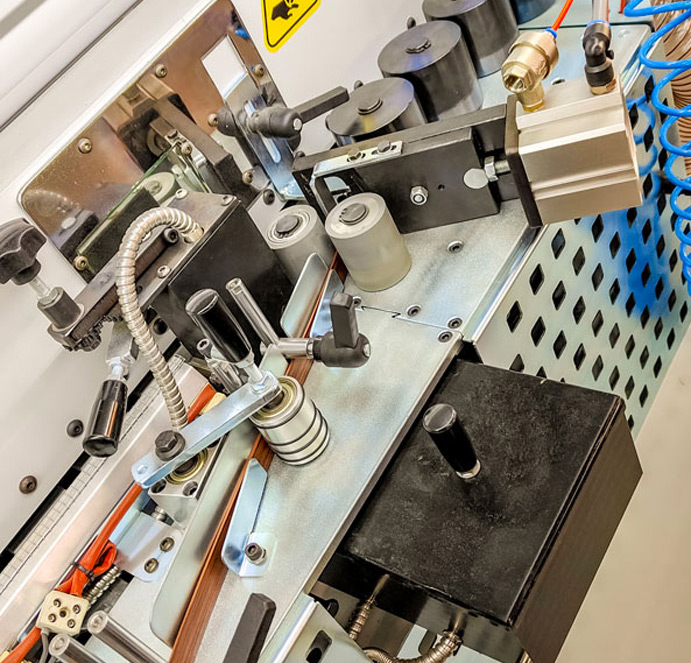 makinelerde kaliteyi öncelikli tuttuk. Mobilya ve Marangoz kenar bantlama makinelerinde ÖN FREZE, ALT ÜST FREZE, BAŞ SON KESME, KÖŞE YUVARLAMA, TEMİZLEME SIVISI, RADİUSLU KAZIMA, KANAL AÇMA, POLİSAJ ve TOZ EMME bölümleri bulunur.